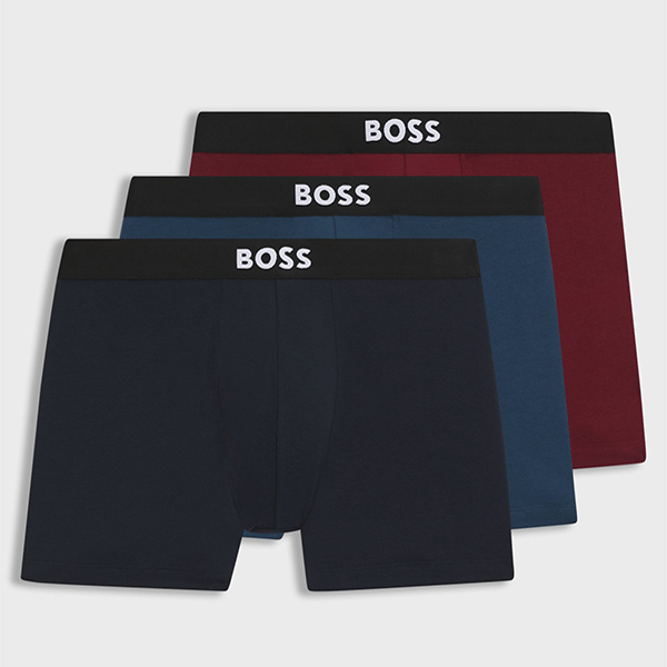 Boss 3- pack boxerbriefs in stretch katoen met langere beenlengte.