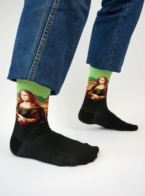 Draag een stukje kunstgeschiedenis met deze sokken. De beroemde glimlach en subtiele details zijn tot in perfectie ingebreid